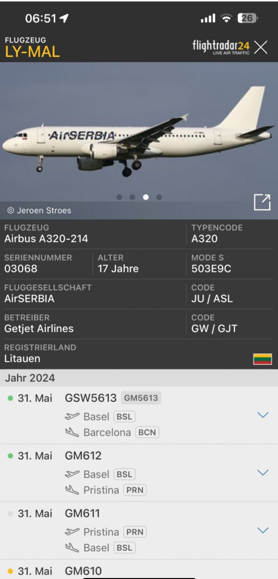 Ne këtë rast firma lituaneze ka përdorur për fluturim aeroplanin e “Air Serbia” dhe kështu më 31 maj, 2 fluturime dyshohet të jenë zhvilluar me ketë aeroplan në Aeroportin Ndërkombëtar të Prishtinës “Adem Jashari”.