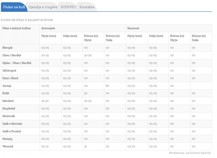 Qendra Kombëtare për Menaxhim Kufitar ka përditësuar infografikën që tregon për pritjet nëpër hyrje-dalje të pikave kufitare.