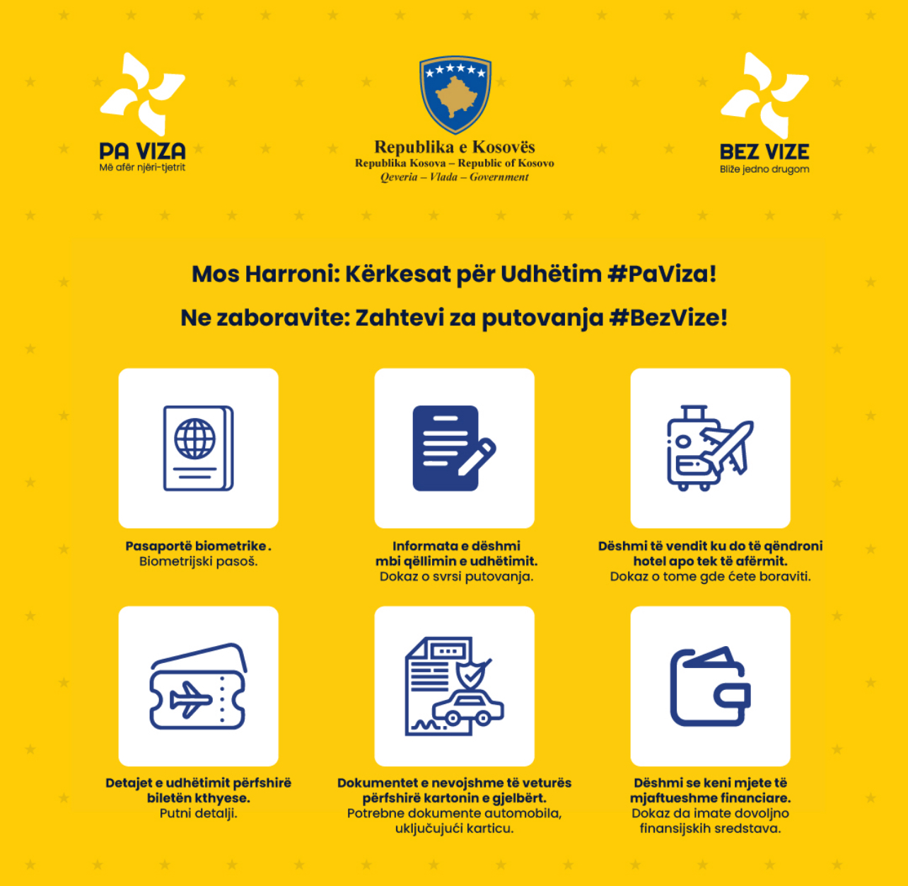 Sipas njoftimit të tyre, për të udhëtuar, duhet të keni pasaportë biometrike, informata e dëshmi mbi qëllimin e udhëtimit, dëshmi të vendit ku do të qëndroni hotel apo tek të afërmit.